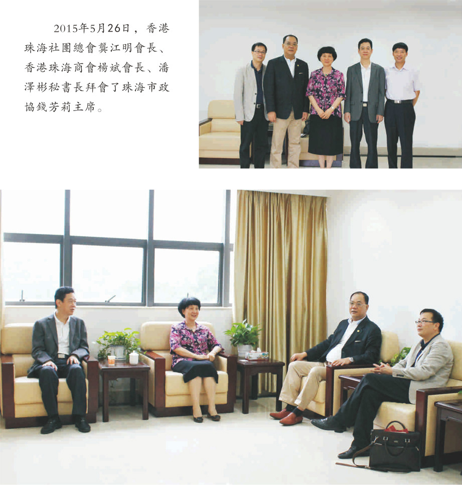 香港珠海社團總會龔江明會長、香港珠海商會楊斌會長、潘澤彬秘書長拜會了珠海市政協錢芳莉主席