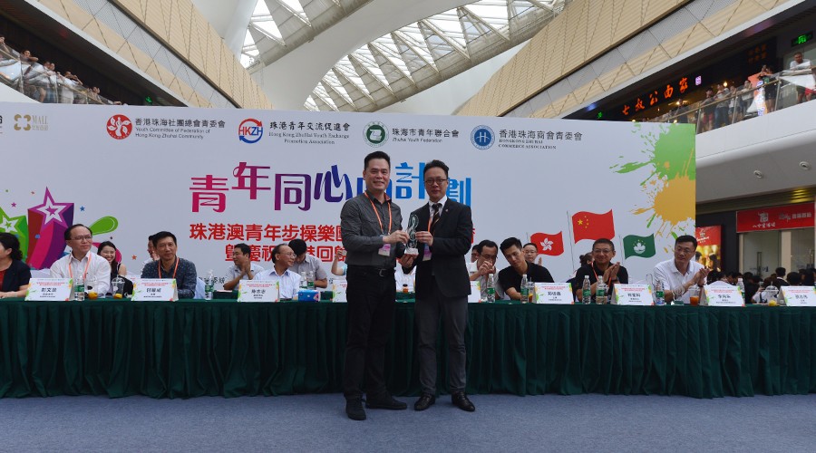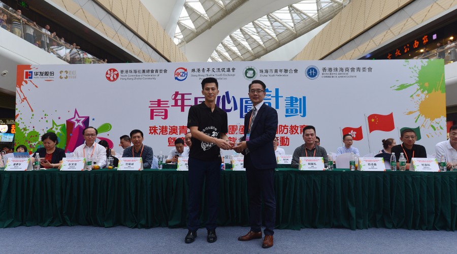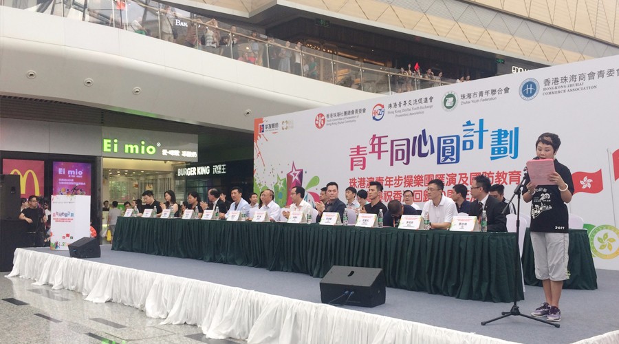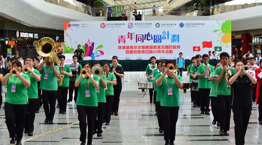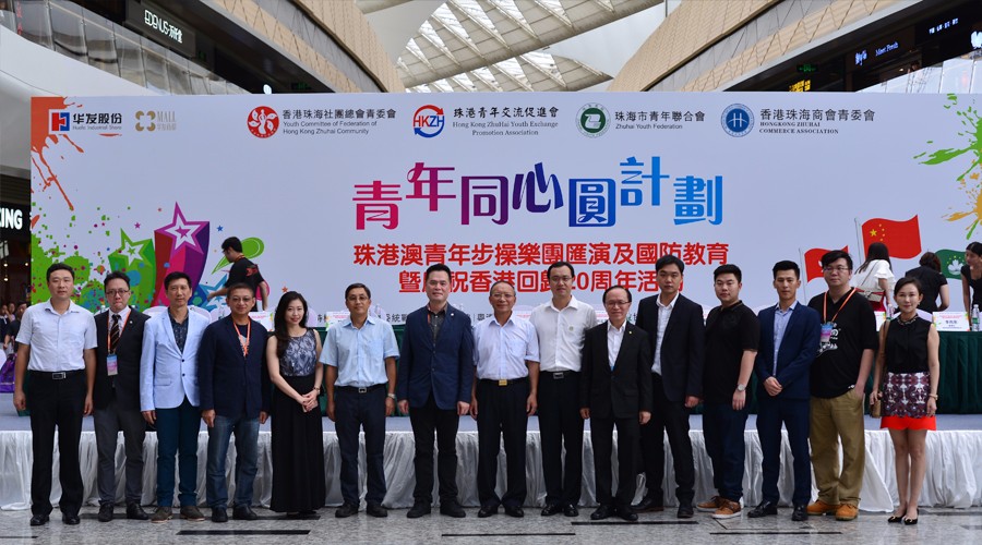 7月8日,由香港珠海社團總會青委會、珠港青年交流促進會、珠海市青年聯合會、與及香港珠海商會青年創業創新委員會(主席:鄭佳鑫)聯合主辦的 “青年同心圓計畫 - 珠港澳青年步操樂團匯演及國防教育暨祝香港回歸20周年活動”在珠海華發商都中庭舉行。來自珠海、香港和澳門三地共8間院校的樂隊共計300余位青年參加這次表演活動。商會執行副會長盧迅民先生、秘書長潘澤彬先生、青年創業創新委員會主席鄭佳鑫理事代表出席這次活動。