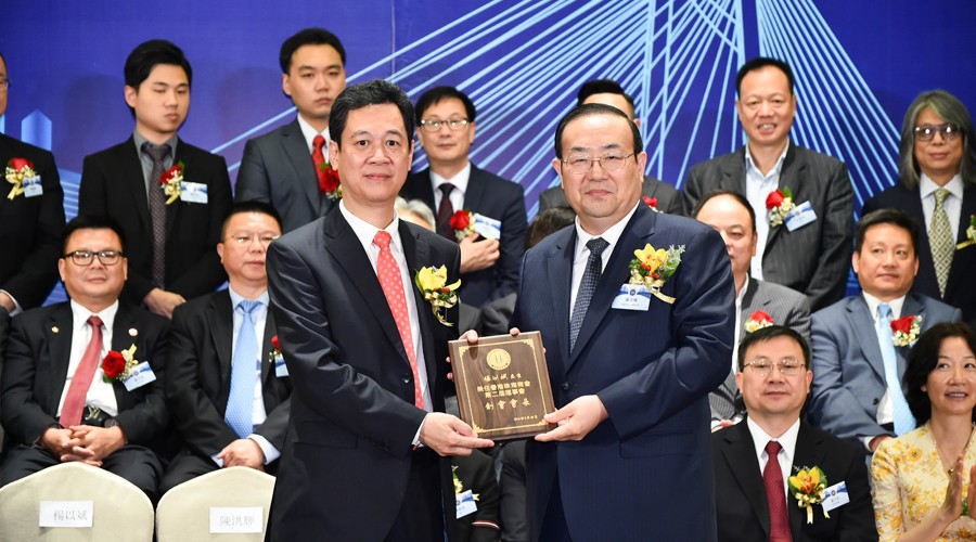 政協珠海市委員會主席陳洪輝先生為楊以斌創會會長、永遠榮譽會長頒發委任狀