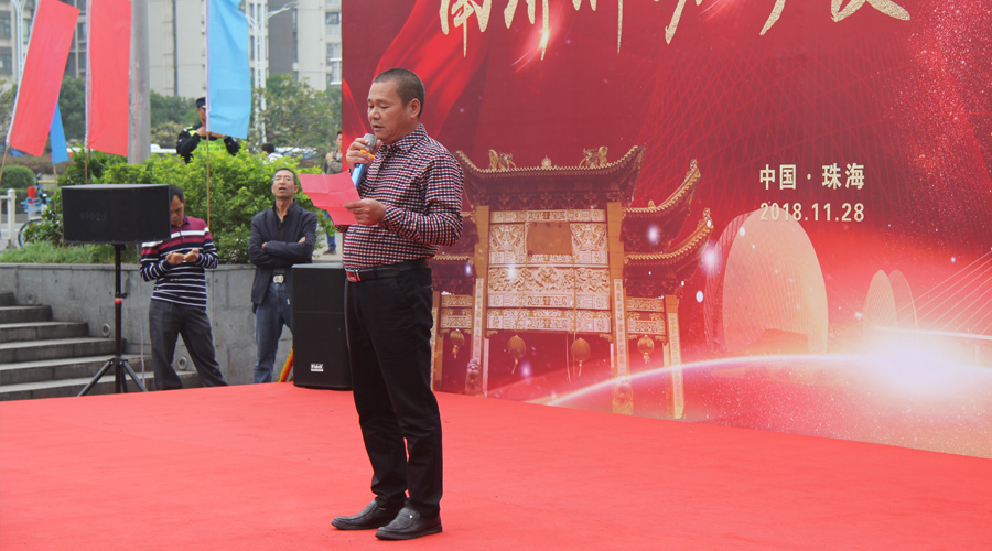 南屏村居委会主任、珠海市南屏宏兴工贸股份合作公司副董事长容瑞平致辞