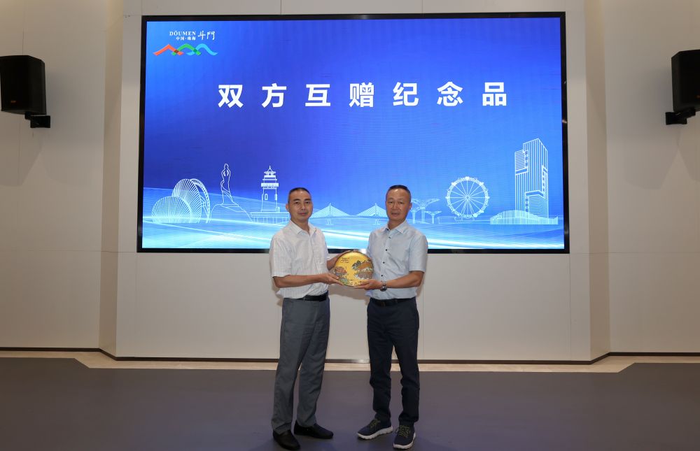 本次斗门考察行程紧凑、内容丰富。上午11点,考察团抵达斗门珠峰科创中心进行参观。该项目位于井岸镇城区南端,地面积近3.7万平方米,建筑面积达9.5万平方米,高度129.9米,为省重点建设项目,定位大湾区“创新示范平台”、“科技引擎”及城市中“芯”,对完善斗门区创新技术服务产业设施体系,为创新创业创造条件,吸引高新企业进驻等意义显著。接着在一楼科创厅举行投资和旅游推介会,由区委统战部常务副部长林宇宾主持,并由斗门区投资促进中心、文体旅游局及斗门大横琴产业发展有限公司对斗门区投资环境、旅游推介及招商载体等内容进行了介绍。接着大会安排区投促中心副主任李扬帆和商会执行会长卢迅民代表签署招商合作框架协议,然后由区政协副主席赖戊亮和商会会长陈剑英进行斗门区和商会互赠纪念品环节。